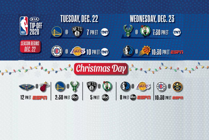 19 with a tnt doubleheader as the defending nba champion milwaukee bucks host the brooklyn nets (7:30 p.m. On tuesday, the nba and espn jointly announced their christmas day slate of games, five one after the other from noon est to after midnight. Nba games on abc christmas day.